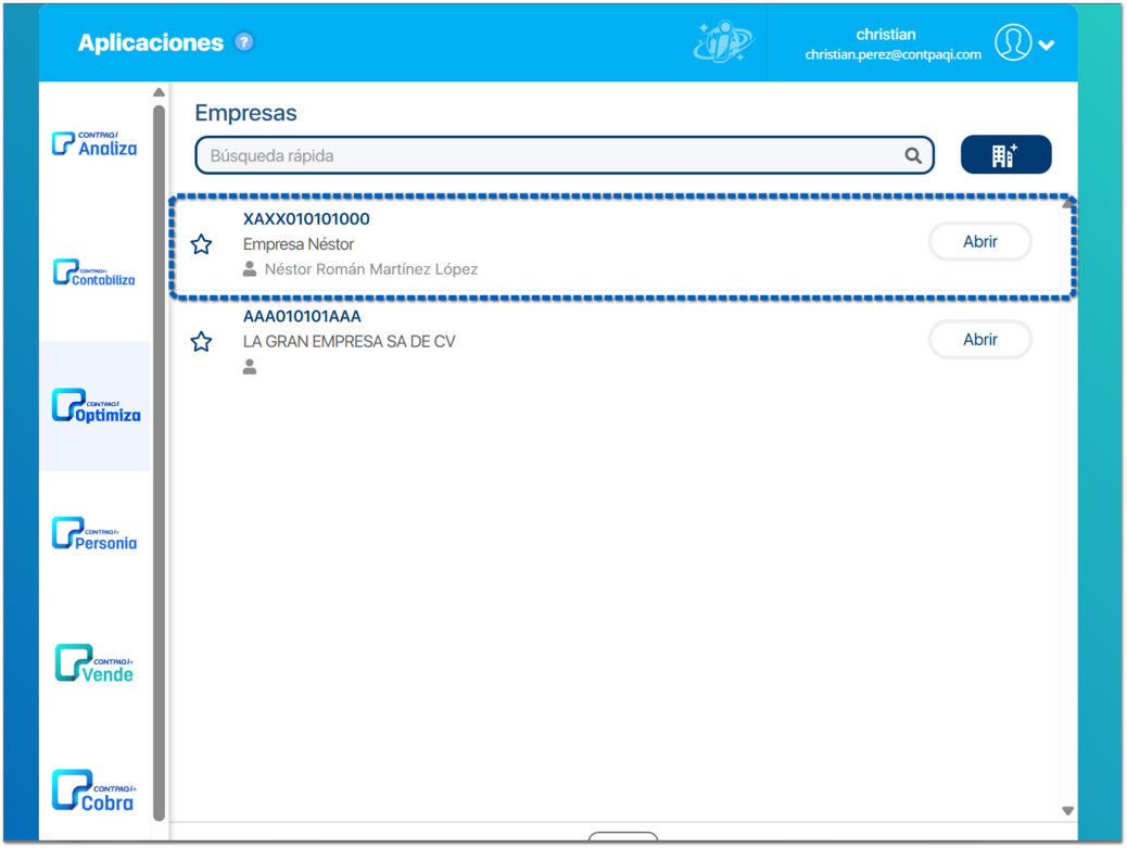 Para registrar un ejecutivo, se debe realizar una invitación a colaborar a tu empresa en CONTPAQi Optimiza.