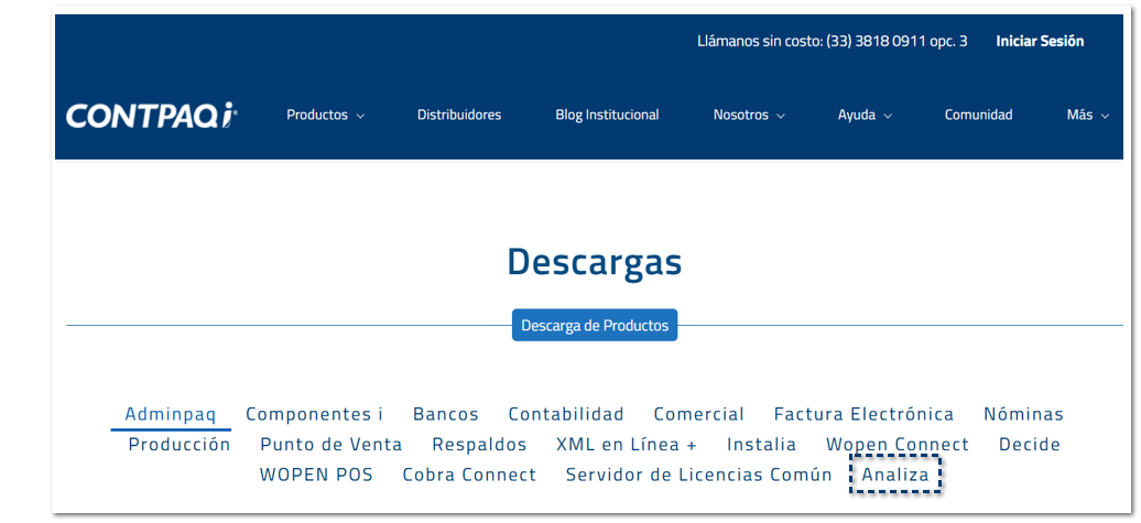 Ingresa al siguiente link: https://www.contpaqi.com/descargas, y haz clic en Analiza.