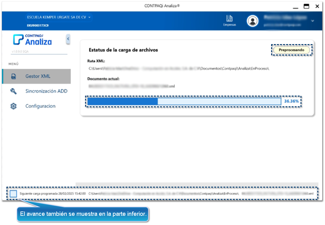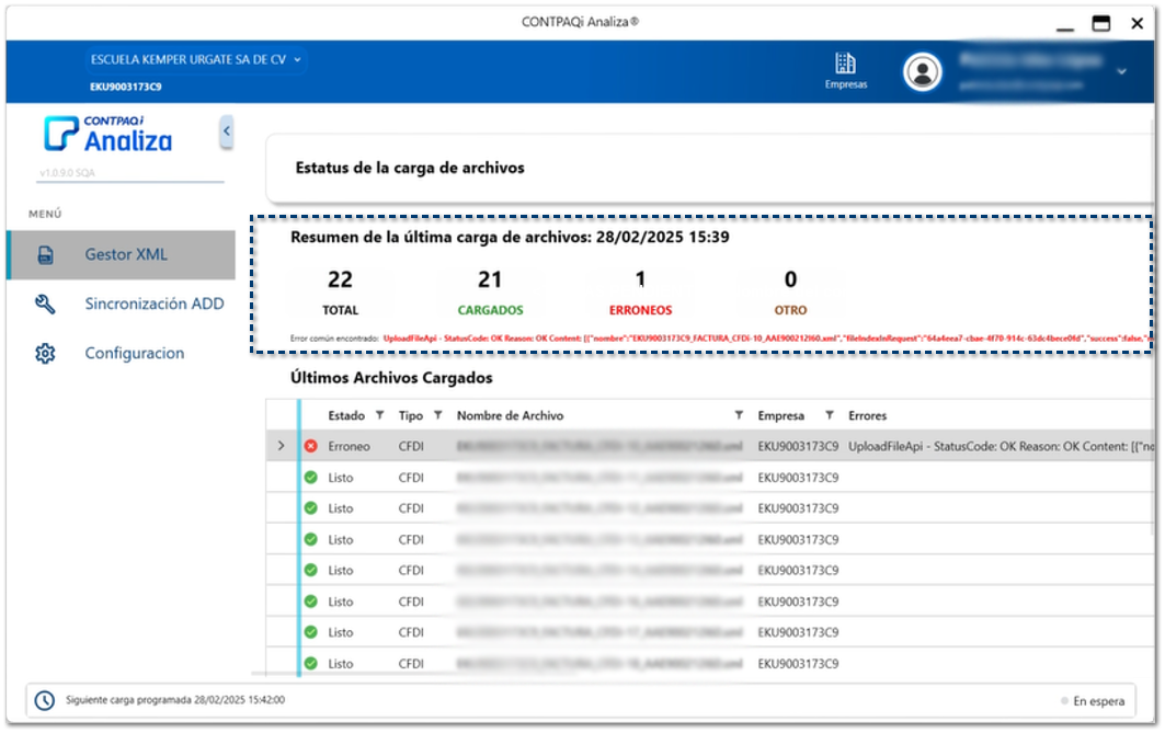 Desde la opción Gestor XML podrás observar el estatus de carga de los comprobantes CFDI: