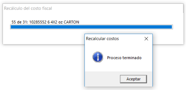 Selecciona los productos a los cuales deseas realizar el recálculo de costos y presiona el botón Aceptar