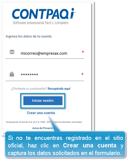 Ingresa al sitio oficialwww.contpaqi.com,y haz clic en Iniciar sesión.