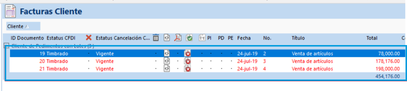 Dentro del listado selecciona las facturas para realizar el cobro y presiona el botón Cobro masivo
