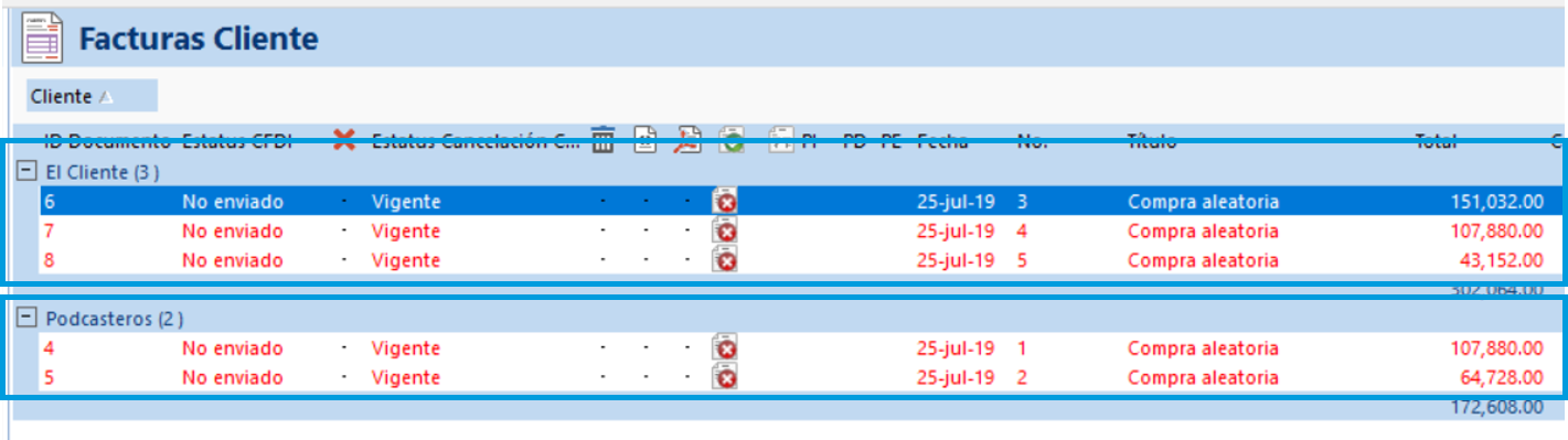 Dentro del listado selecciona las facturas para realizar el cobro y presiona el botón Cobromasivo