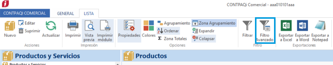 Presiona el botón Filtro avanzado ubicado en la barra de configuraciones