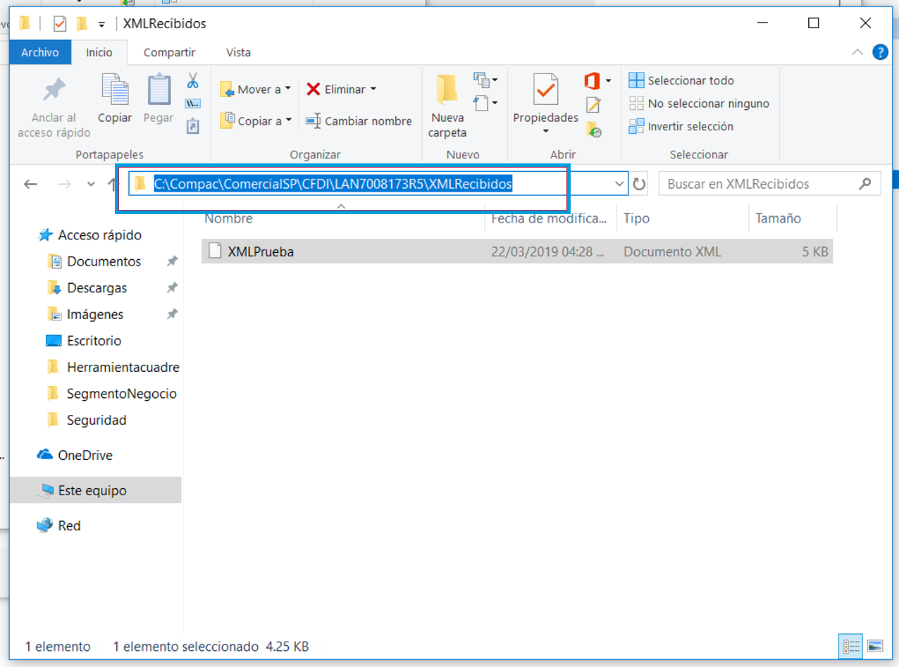 Abre la ruta en un explorador de Windows y guarda los archivos XML