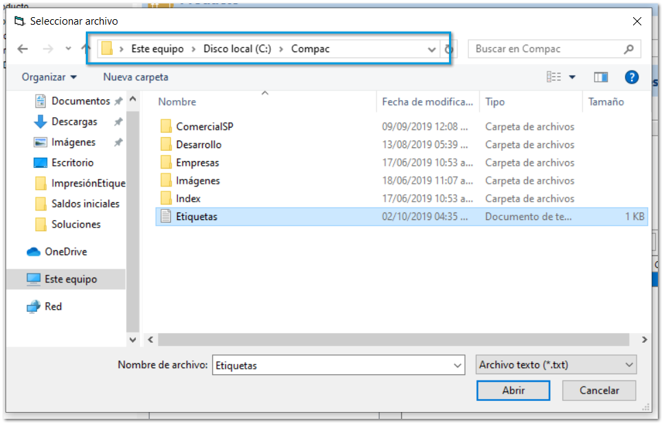 Busca el directorio en el cual se encuentra el archivo txt y presiona el botón Abrir