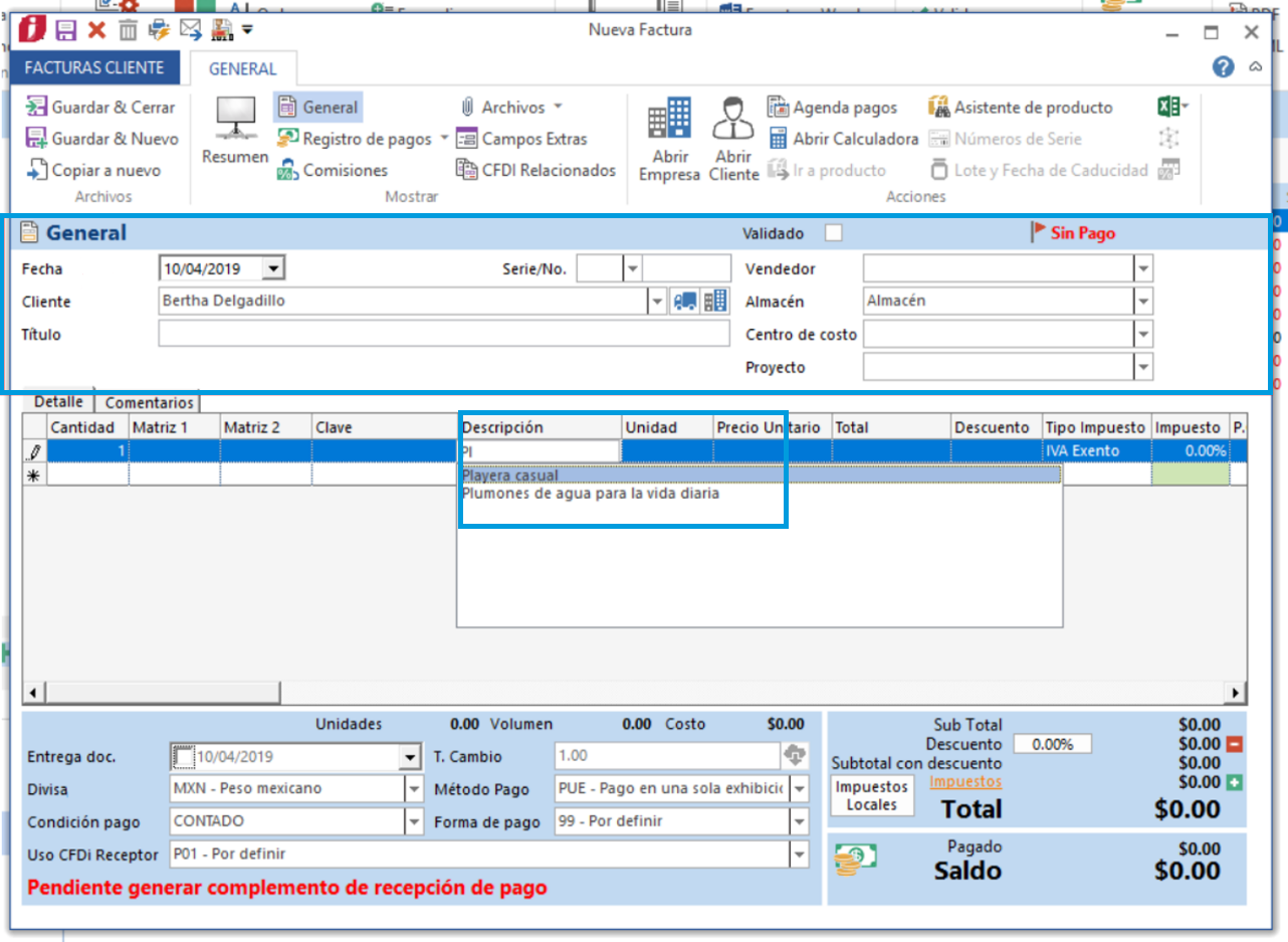 Entra al documento deseado para usar los productos matriciales (Para este ejemplo usamos Facturas Cliente) y crea un nuevo documento