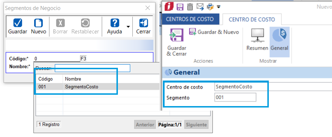 CONTPAQi® Comercial Pro relaciona el centro de costos con el segmento de negocio de CONTPAQi® Contabilidad. Para realizar la relación entre los sistemas, el número de segmento de negocio debe ser completamente igual al número del centro de costo, así, si el número de segmento de negocio en CONTPAQi®Contabilidad es 001, el número que compete al centro de costo en CONTPAQi® Comercial Pro debe ser 001. Esta información puede ser vista en las facturas y las pólizas.