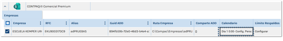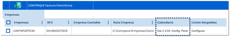 Una vez programado el respaldo, al regresar a la vista de Mis Empresas, podrás ver que en la columna Calendario, se indicará el día, la hora y el minuto.