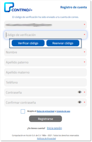![]() Por seguridad, se enviará un código de verificación al correo electrónico que ingresaste; cópialo y pégalo en el campo Código de verificación y da clic en Verificar código.