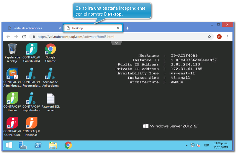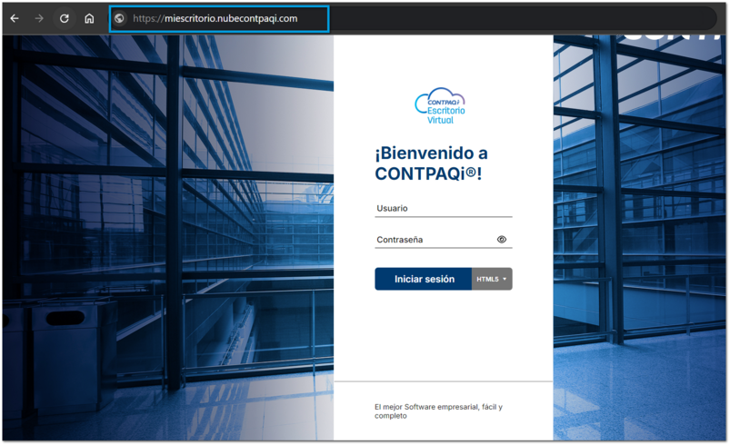 Desde un explorador de internet captura tu enlace de ingreso (Ejemplo: https://vdi.nubecontpaqi.com/)