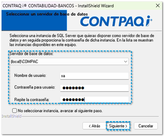 Nombre de la instancia: (Ejemplo: COMPAC).