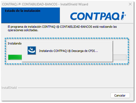![]() Posteriormente se mostrará la instalación de CONTPAQi® Descarga de CFDI...