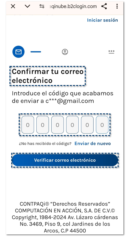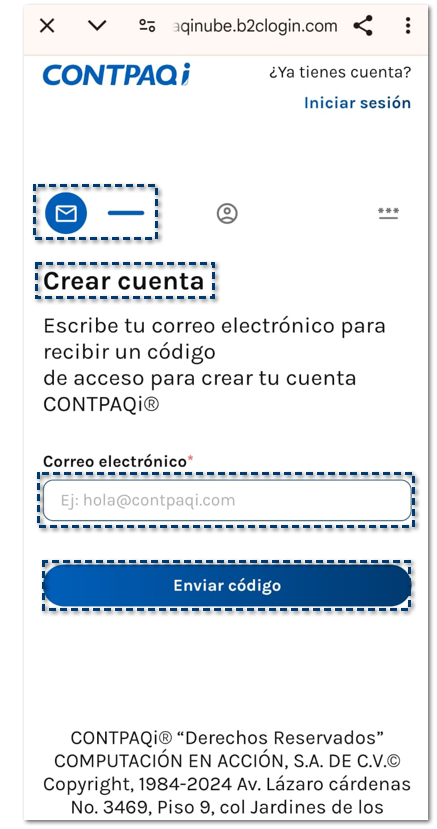 ![]() Se enviará un código de acceso para crear tu cuenta CONTPAQi®.