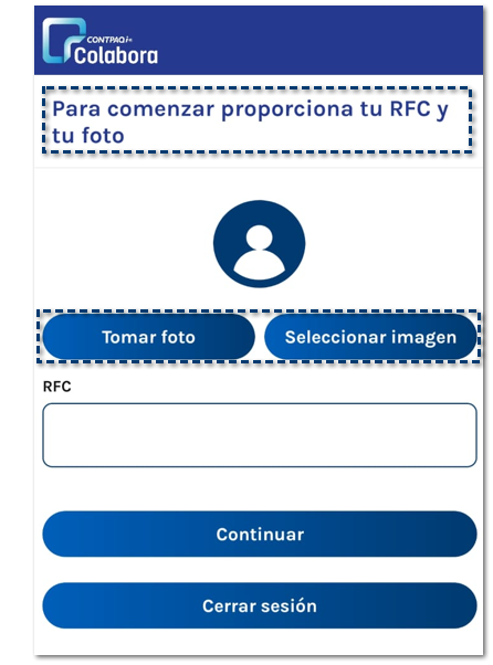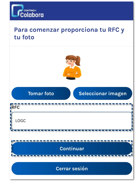 Para continuar, deberás proporcionar tu RFC y tu foto, haz clic en el botón Aceptar.