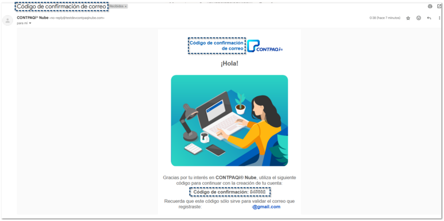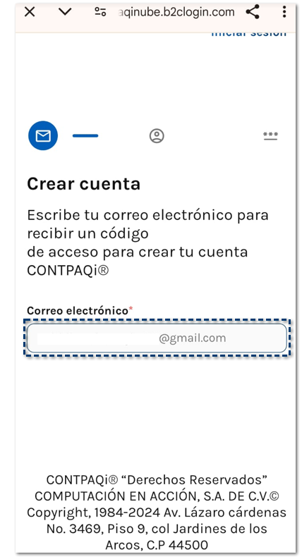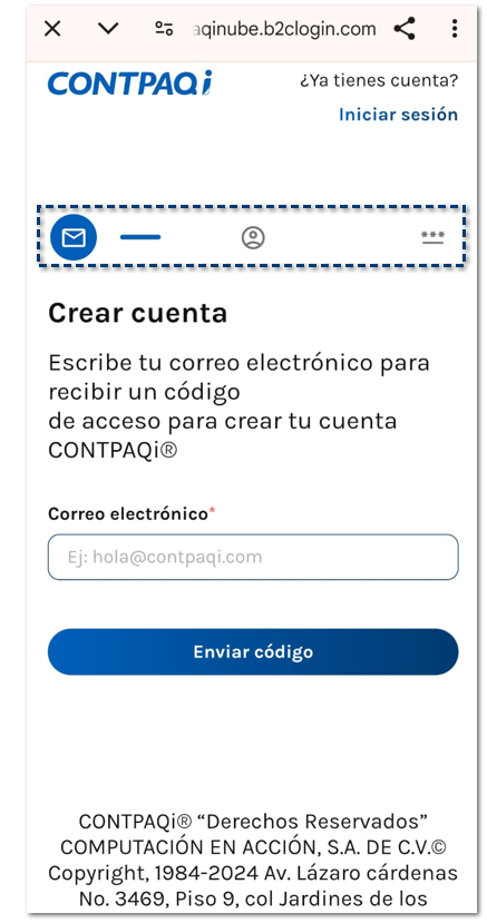 ![]() Se enviará un código de acceso para crear tu cuenta CONTPAQi®.