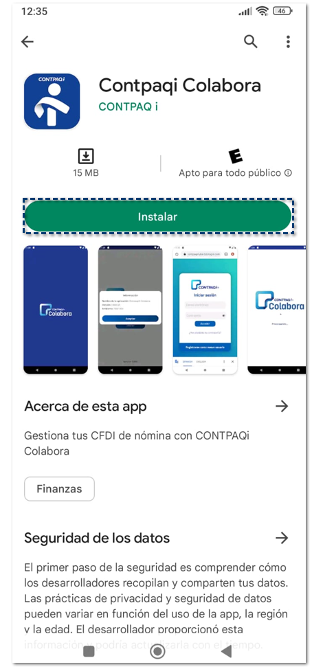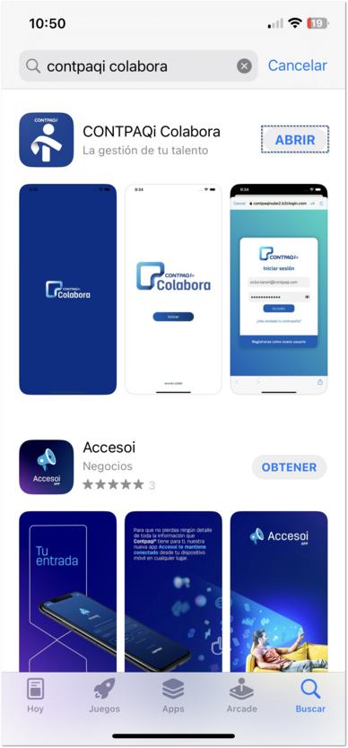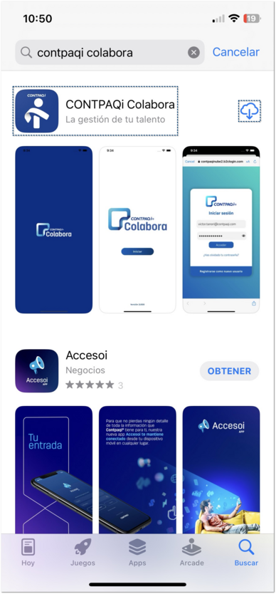 Identifica y selecciona la aplicación CONTPAQi Colabora y descarga la aplicación: