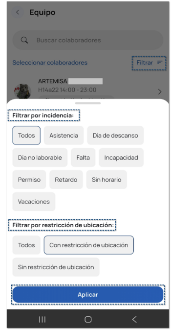 Los filtros permiten ajustar la lista de colaboradores según tus necesidades: