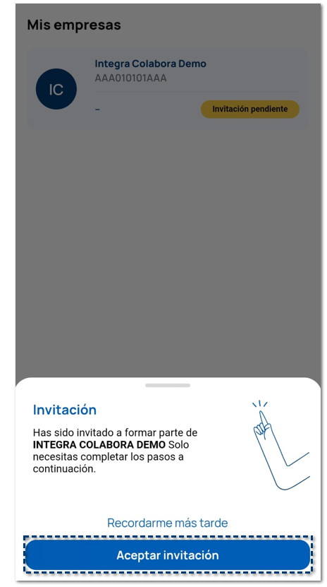 Por último, presiona el botón Aceptar invitación, para acceder a la empresa a la que perteneces.