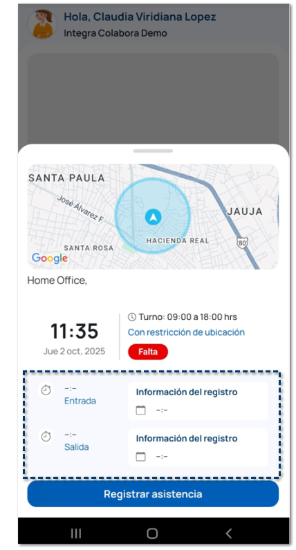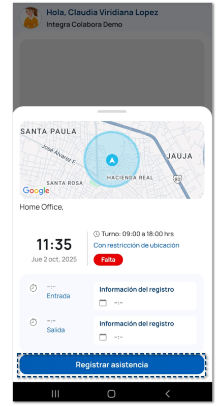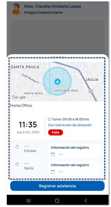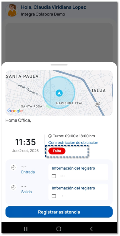 Esto te ayuda a confirmar si estás dentro del horario en el que puedes registrar tu asistencia.