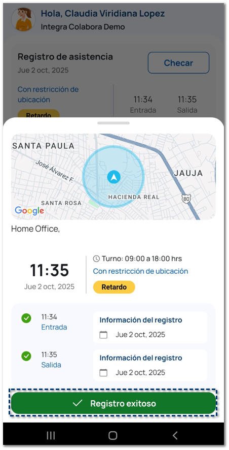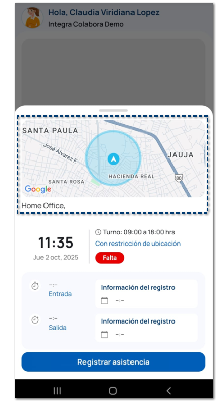 Este mapa sirve para validar si estás dentro de la zona permitida para registrar tu asistencia, de acuerdo con las configuraciones de tu empresa.