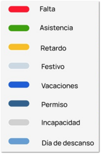 Aquí se muestra un tag de color que indica la incidencia o asistencia de tu día.