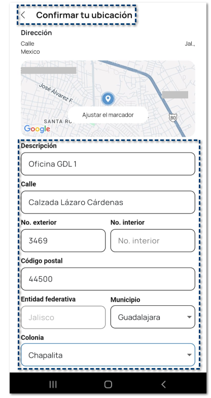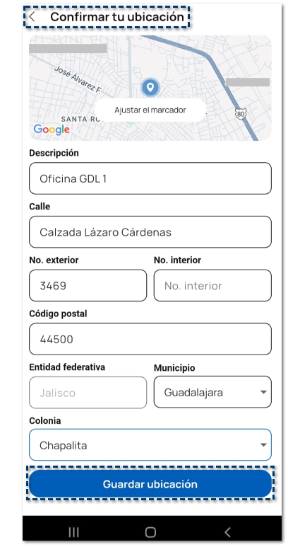 Al encontrar tu ubicación exacta, presiona el botón Confirmar ubicación.