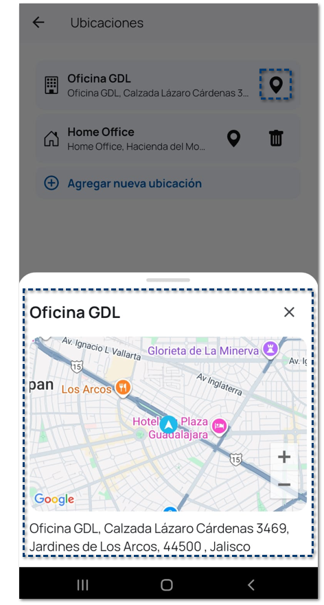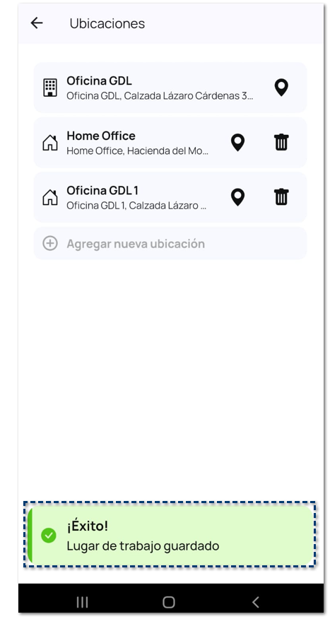 El nuevo lugar se guardará y regresarás a la lista de ubicaciones, donde aparecerá tu nuevo registro.