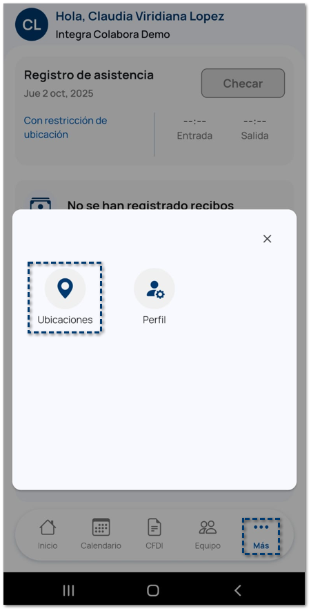 Por ejemplo: Si trabajas desde casa tres días a la semana, puedes dar de alta tu domicilio como “Casa Principal” para registrar asistencia desde ahí.