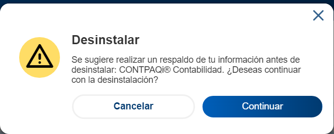 Se abrirá un aviso de advertencia, si deseas continuar con la desinstalación, da clic en Continuar.