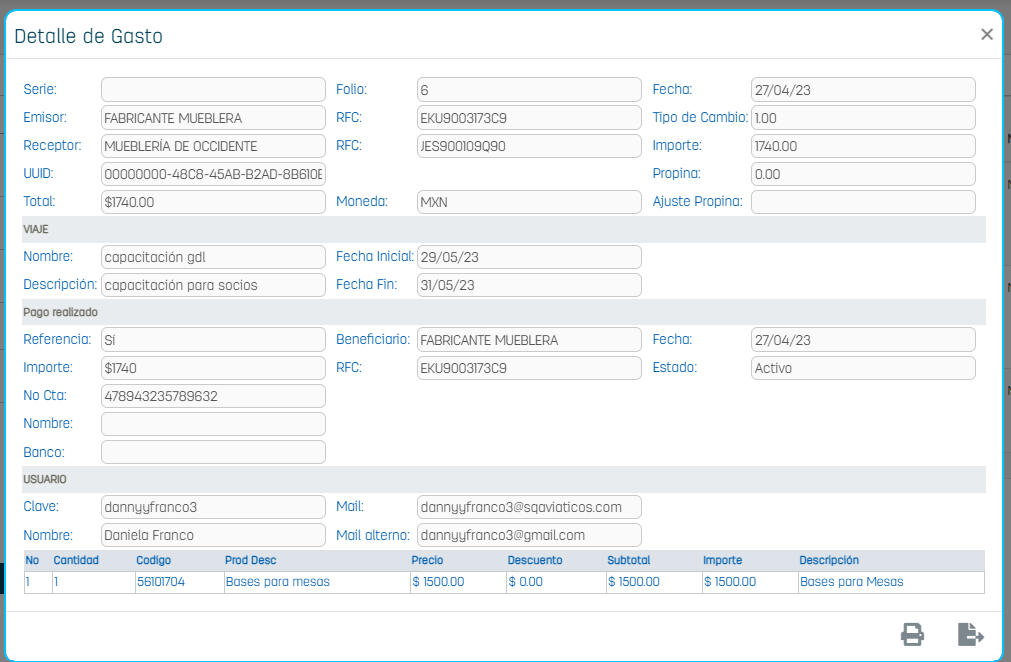 Además, si deseas conocer todos los datos del gasto, haz clic en el registro deseado y te desglosará la información.