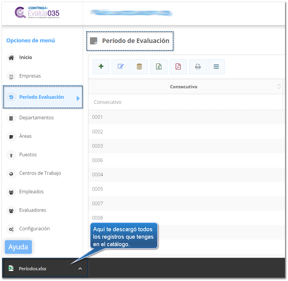 Desde CONTPAQi® Evalúa versión 1.0, podrás exportar los siguientes catálogos en formato Excel®: