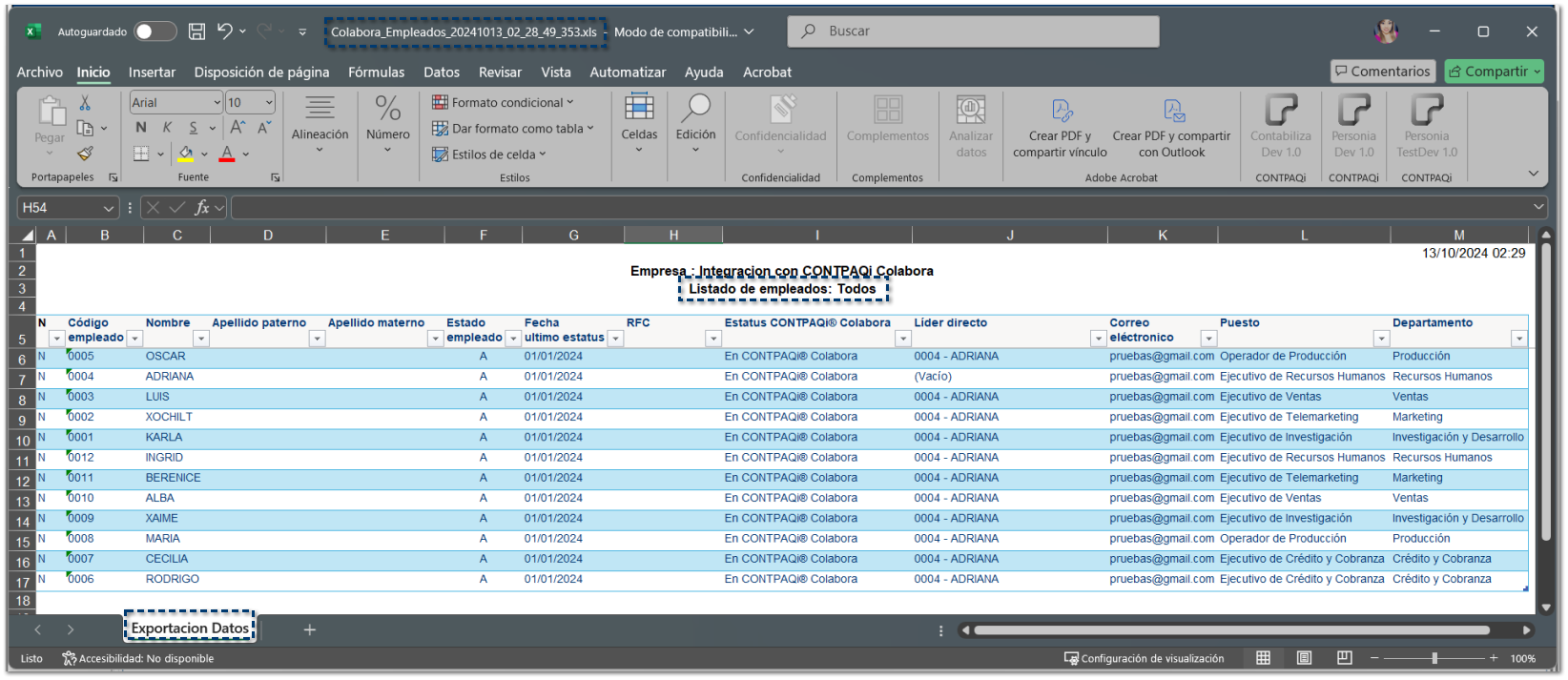 Al guardar el archivo, de manera automática se generará el documento Excel con la información del módulo que se tenga seleccionado.