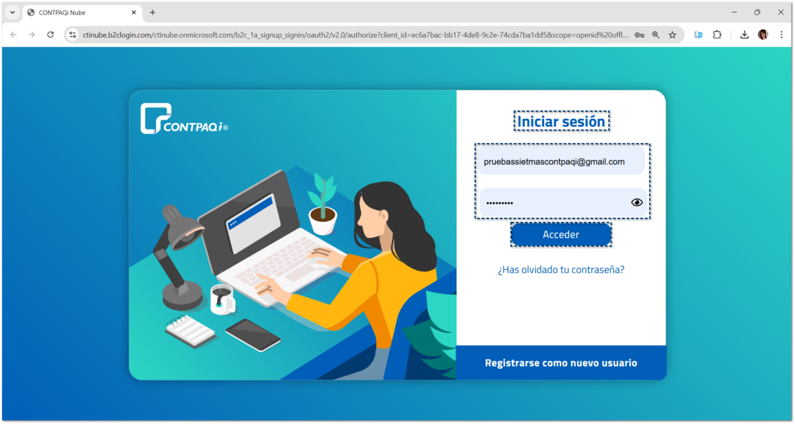 Al ingresar a alguna de las opciones anteriores, se mostrará la ventana Iniciar sesión de CONTPAQi Nube.