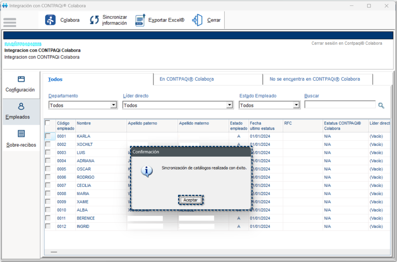 El proceso de sincronización de catálogos se ha realizado con éxito.
