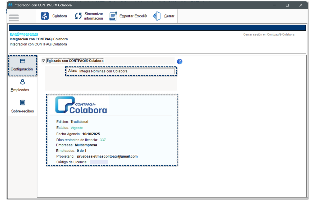 ¤ Alias: Nombre de la empresa de CONTPAQi® Colabora.