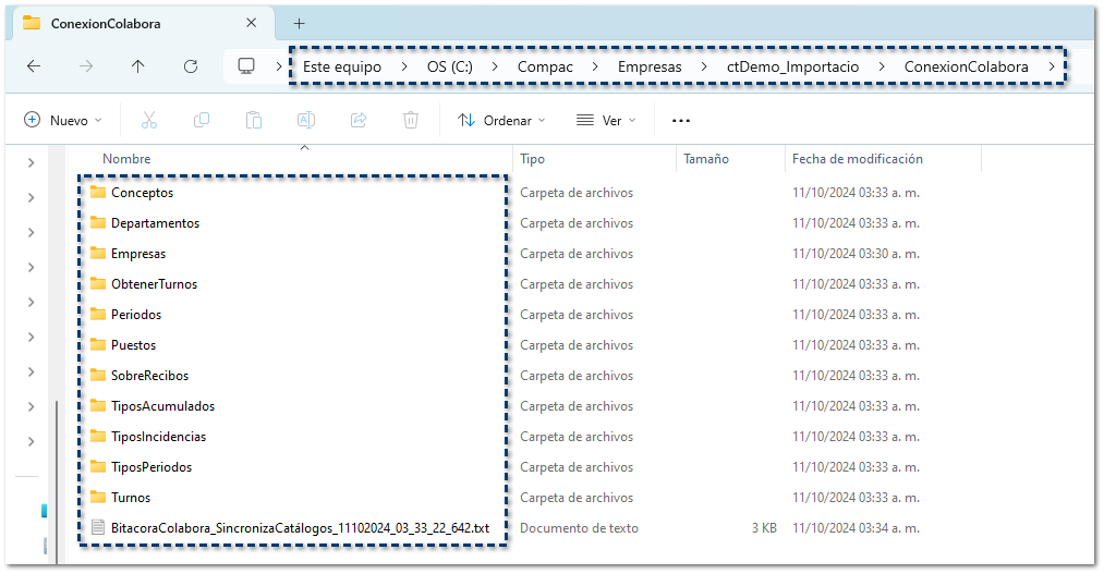 Dentro de la BITÁCORA DE SINCRONIZACIÓN DE CATÁLOGOS ENVIADOS EN CONTPAQi® COLABORA, encontrarás la siguiente información: