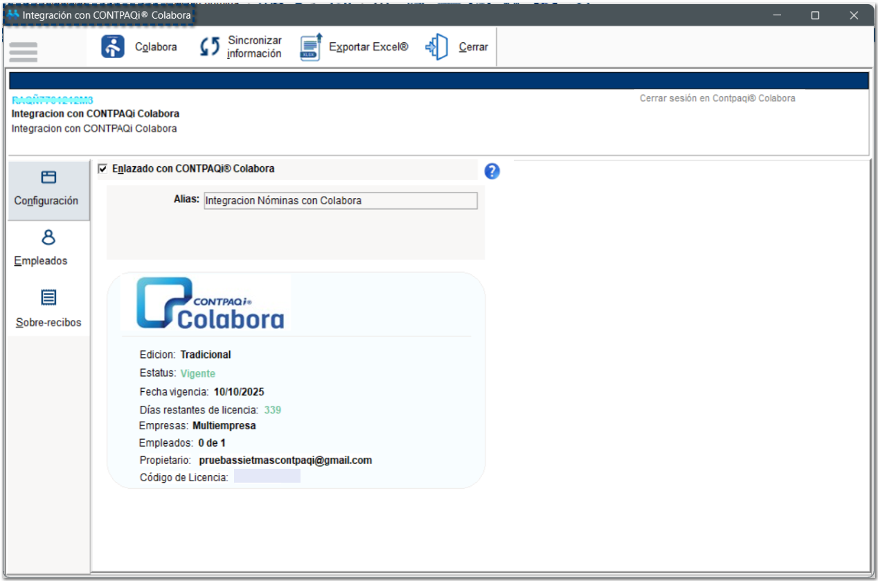 Se mostrará el módulo Integración con CONTPAQi® Colabora: