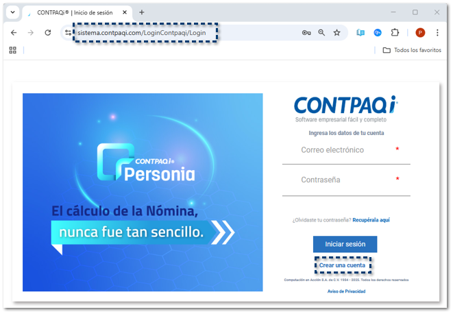 Ingresa al link: https://sistema.contpaqi.com/LoginContpaqi/Login y haz clic en Crear una cuenta.