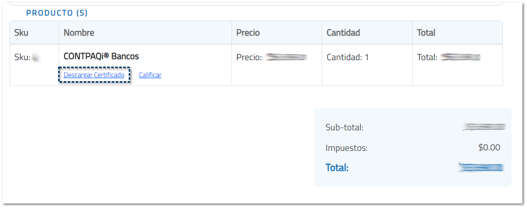 Desde ahí, podrás descargar el certificado que se genere por la compra, solo se deberá dar clic en Descargar certificado.