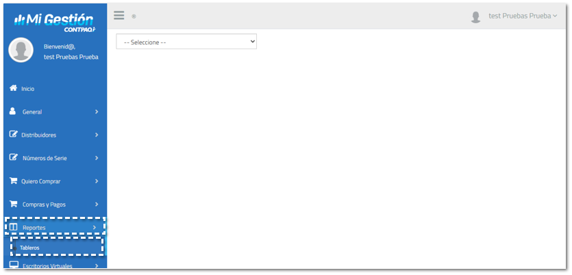 Para visualizar este tablero, debes estar dentro de Mi Gestión, ingresar al menú Reportes y elegir Tablero.