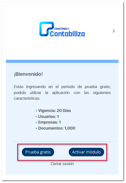 Si te estas registrando a través de un correo de invitación a colaborar que recibiste y continuas con el flujo, al redireccionarte al portal de aplicaciones CONTPAQi® Nube, se aceptará la invitación por lo que no será necesario que actives la prueba gratis o realices la activación de un módulo.