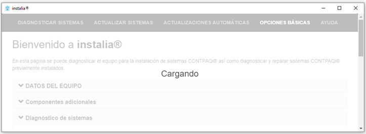Al hacer clic en el menú OPCIONES BÁSICAS se mostrará un mensaje que indica que está Cargando la interfaz: