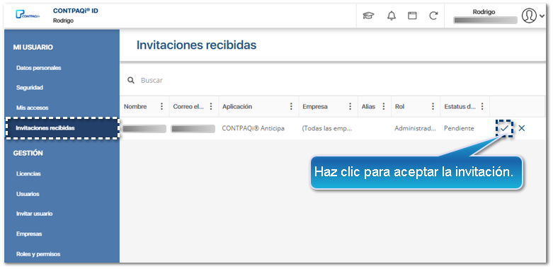 Aceptar una invitación de CONTPAQi Nube®