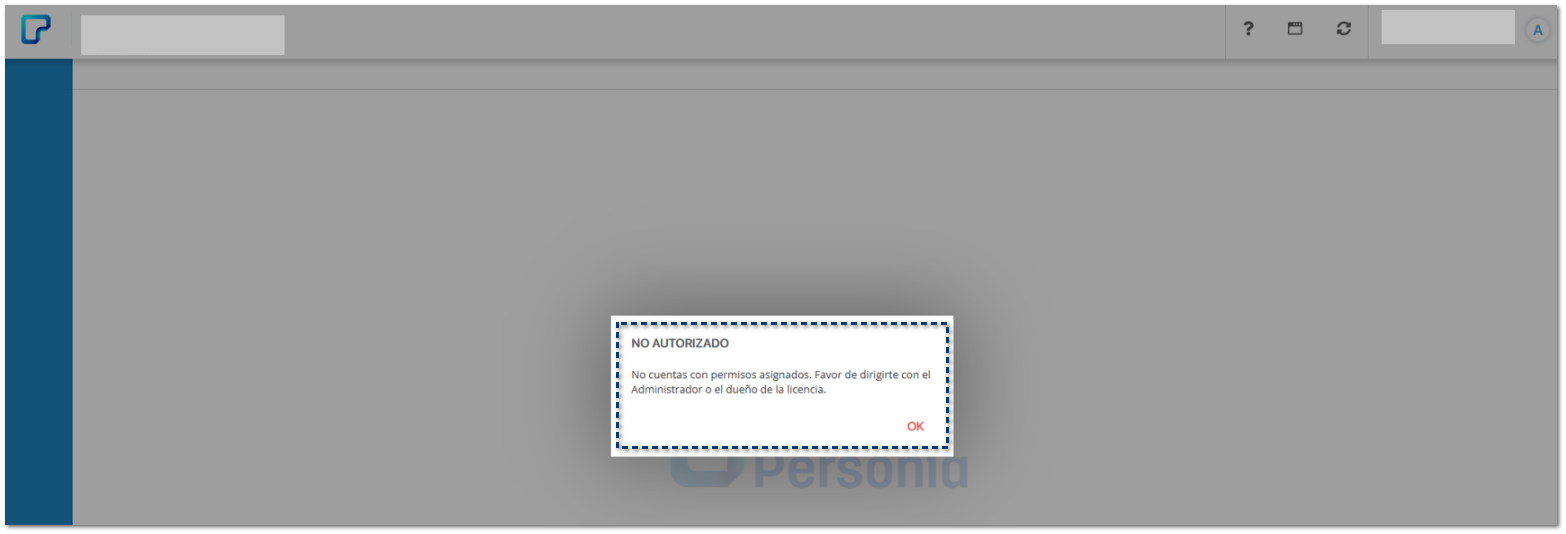 Al no tener acceso a ningún módulo dentro la empresa, se mostrará el siguiente mensaje al ingresar:
