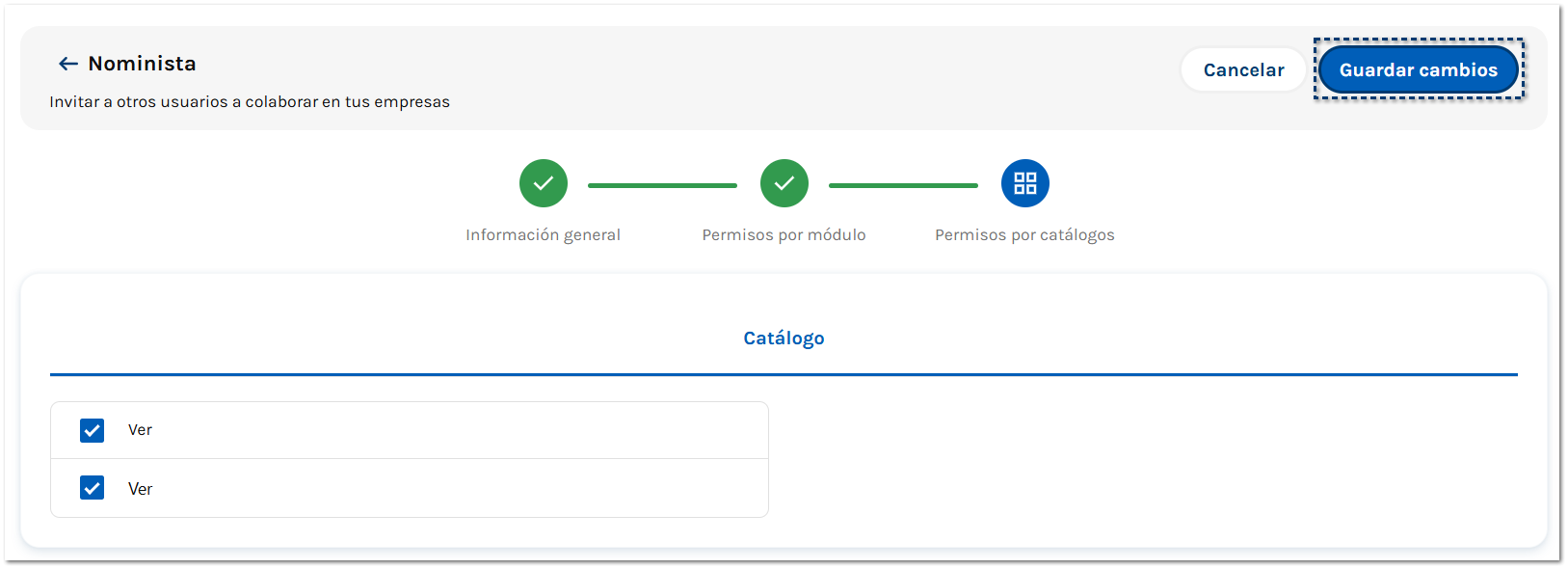 Una vez que has finalizado la edición de cada rol, haz clic en el botón Guardar cambios.