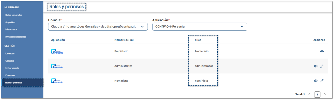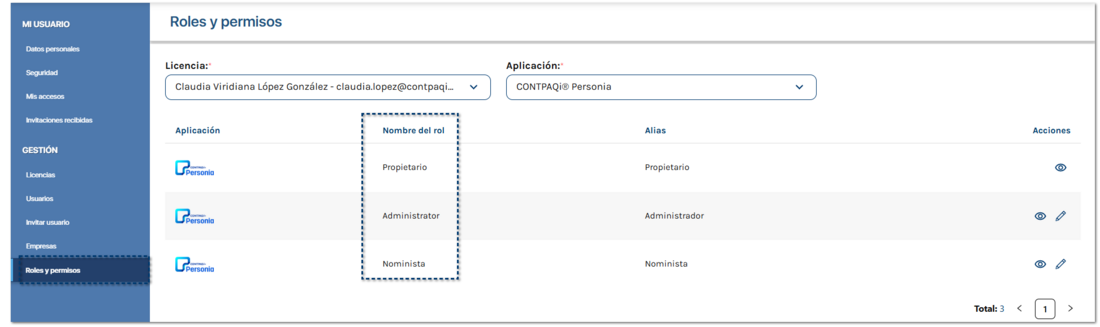 El rol Propietario es la base de todos los demás roles y representa al dueño de la licencia o cuenta principal dentro de CONTPAQi Personia®.
