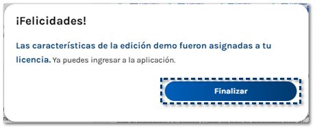 Se muestra el mensaje de confirmación, haz clic en Finalizar.