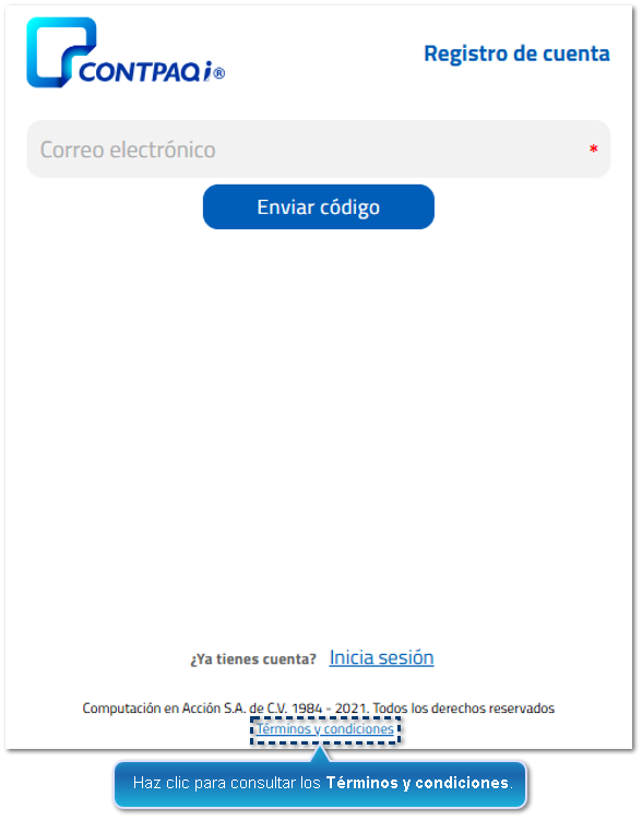 Si aún no te has registrado en CONTPAQi Nube®, realiza lo siguiente: