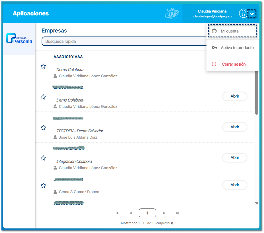 ¿Cómo ingreso?Dentro del Portal de Aplicaciones Nube, despliega el menú de Opciones y selecciona Mi cuenta.